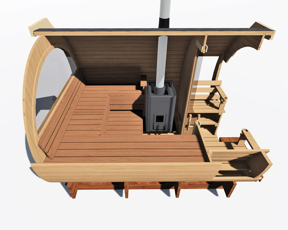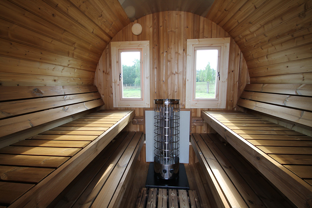 Võimas puu- või elektriküttega keris loob tõelise saunanaudingu igas ilmastikus, samas kui saunaruumi ümar kuju tagab kuumuse ja leili ühtlase jaotumise.