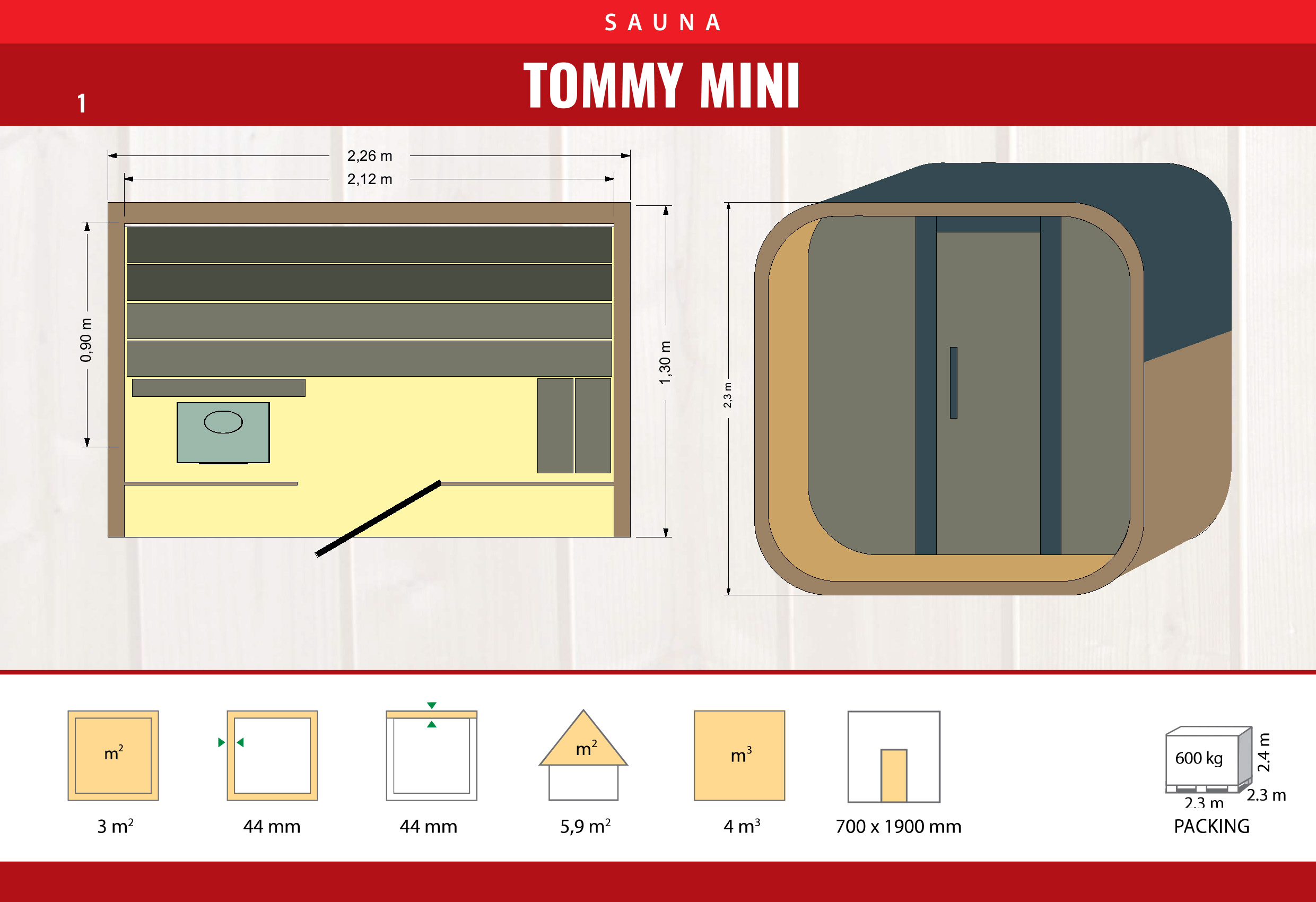 Uno on meie kõige kompaktsem torusaun, kuid ära lase selle tagasihoidlikel mõõtmetel end petta – see mahutab mugavalt kuni neli saunalist.